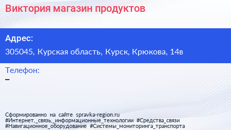 Виктория, магазин продуктов по адресу 305045, Курская область, Курск, Крюкова, 14в в дальнейшем Организация, размещена в следующих категориях: