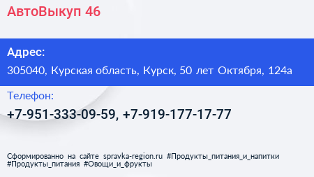 АвтоВыкуп.46 по адресу 305040, Курская область, Курск, 50 лет Октября, 124а в дальнейшем Организация, размещена в следующих категориях: