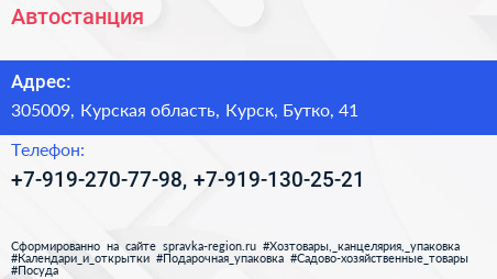 Автостанция+ по адресу 305009, Курская область, Курск, Бутко, 41 в дальнейшем Организация, размещена в следующих категориях:
