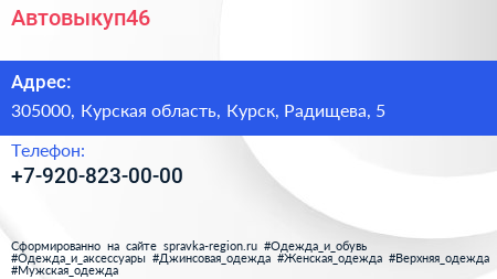 Автовыкуп46 по адресу 305000, Курская область, Курск, Радищева, 5 в дальнейшем Организация, размещена в следующих категориях: