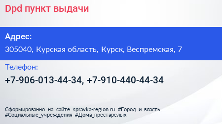 Dpd, пункт выдачи по адресу 305040, Курская область, Курск, Веспремская, 7 в дальнейшем Организация, размещена в следующих категориях: