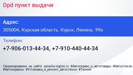 Dpd, пункт выдачи по адресу 305004, Курская область, Курск, Ленина, 99а в дальнейшем Организация, размещена в следующих категориях: