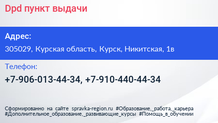 Dpd, пункт выдачи по адресу 305029, Курская область, Курск, Никитская, 1в в дальнейшем Организация, размещена в следующих категориях: