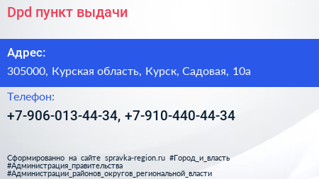 Dpd, пункт выдачи по адресу 305000, Курская область, Курск, Садовая, 10а в дальнейшем Организация, размещена в следующих категориях: