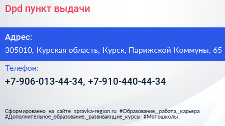 Dpd, пункт выдачи по адресу 305010, Курская область, Курск, Парижской Коммуны, 65 в дальнейшем Организация, размещена в следующих категориях: