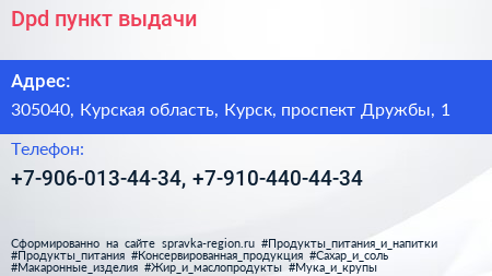 Dpd, пункт выдачи по адресу 305040, Курская область, Курск, проспект Дружбы, 1 в дальнейшем Организация, размещена в следующих категориях: