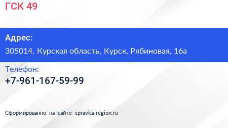 ГСК №49 по адресу 305014, Курская область, Курск, Рябиновая, 16а в дальнейшем Организация, размещена в следующих категориях: