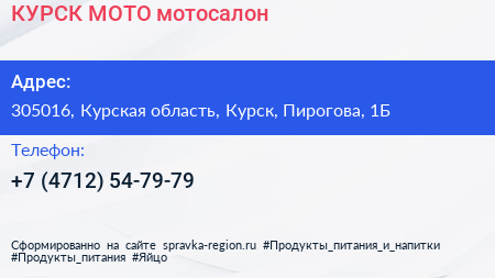 КУРСК-МОТО, мотосалон по адресу 305016, Курская область, Курск, Пирогова, 1Б в дальнейшем Организация, размещена в следующих категориях: