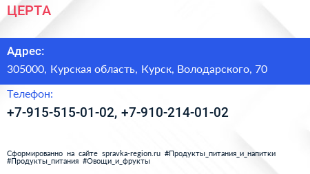 ЦЕРТА по адресу 305000, Курская область, Курск, Володарского, 70 в дальнейшем Организация, размещена в следующих категориях: