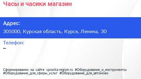 Часы и часики, магазин по адресу 305000, Курская область, Курск, Ленина, 30 в дальнейшем Организация, размещена в следующих категориях:
