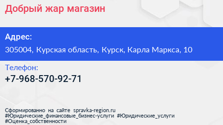 Добрый жар, магазин по адресу 305004, Курская область, Курск, Карла Маркса, 10 в дальнейшем Организация, размещена в следующих категориях: