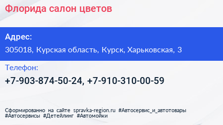 Флорида, салон цветов по адресу 305018, Курская область, Курск, Харьковская, 3 в дальнейшем Организация, размещена в следующих категориях: