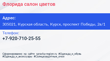 Флорида, салон цветов по адресу 305021, Курская область, Курск, проспект Победы, 2в/1 в дальнейшем Организация, размещена в следующих категориях: