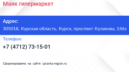 Маяк, гипермаркет по адресу 305018, Курская область, Курск, проспект Кулакова, 146з в дальнейшем Организация, размещена в следующих категориях: