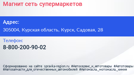 Магнит, сеть супермаркетов по адресу 305004, Курская область, Курск, Садовая, 28 в дальнейшем Организация, размещена в следующих категориях: