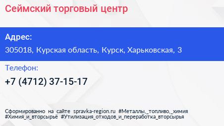 Сеймский, торговый центр по адресу 305018, Курская область, Курск, Харьковская, 3 в дальнейшем Организация, размещена в следующих категориях: