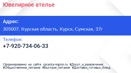 Ювелирное ателье по адресу 305007, Курская область, Курск, Сумская, 37г в дальнейшем Организация, размещена в следующих категориях: