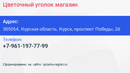 Цветочный уголок, магазин по адресу 305014, Курская область, Курск, проспект Победы, 26 в дальнейшем Организация, размещена в следующих категориях: