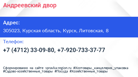 Андреевский двор по адресу 305023, Курская область, Курск, Литовская, 8 в дальнейшем Организация, размещена в следующих категориях: