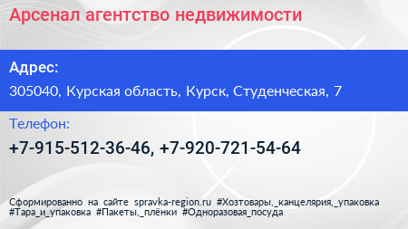 Арсенал, агентство недвижимости по адресу 305040, Курская область, Курск, Студенческая, 7 в дальнейшем Организация, размещена в следующих категориях: