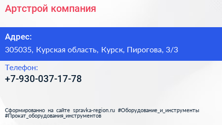 Артстрой, компания по адресу 305035, Курская область, Курск, Пирогова, 3/3 в дальнейшем Организация, размещена в следующих категориях:
