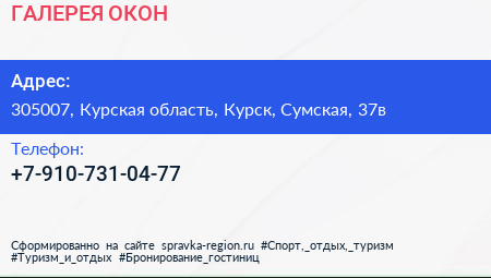 ГАЛЕРЕЯ ОКОН+ по адресу 305007, Курская область, Курск, Сумская, 37в в дальнейшем Организация, размещена в следующих категориях: