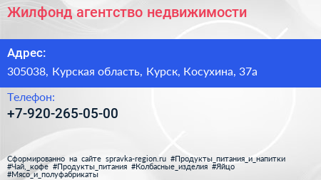 Жилфонд, агентство недвижимости по адресу 305038, Курская область, Курск, Косухина, 37а в дальнейшем Организация, размещена в следующих категориях: