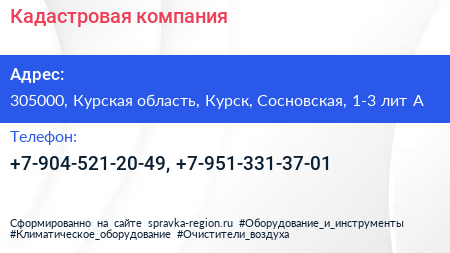 Кадастровая компания по адресу 305000, Курская область, Курск, Сосновская, 1-3 лит А в дальнейшем Организация, размещена в следующих категориях: