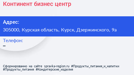 Континент, бизнес-центр по адресу 305000, Курская область, Курск, Дзержинского, 9а в дальнейшем Организация, размещена в следующих категориях: