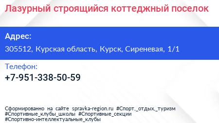 Лазурный, строящийся коттеджный поселок по адресу 305512, Курская область, Курск, Сиреневая, 1/1 в дальнейшем Организация, размещена в следующих категориях: