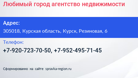 Любимый город, агентство недвижимости по адресу 305018, Курская область, Курск, Резиновая, 6 в дальнейшем Организация, размещена в следующих категориях: