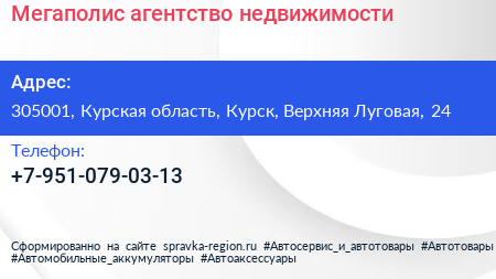 Мегаполис, агентство недвижимости по адресу 305001, Курская область, Курск, Верхняя Луговая, 24 в дальнейшем Организация, размещена в следующих категориях: