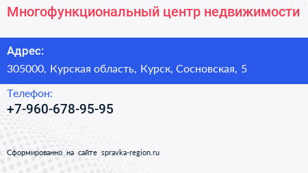 Многофункциональный центр недвижимости по адресу 305000, Курская область, Курск, Сосновская, 5 в дальнейшем Организация, размещена в следующих категориях:
