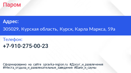 Паром по адресу 305029, Курская область, Курск, Карла Маркса, 59а в дальнейшем Организация, размещена в следующих категориях: