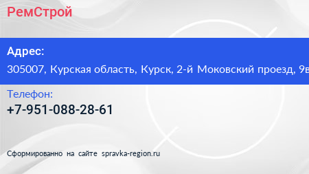 РемСтрой по адресу 305007, Курская область, Курск, 2-й Моковский проезд, 9в в дальнейшем Организация, размещена в следующих категориях: