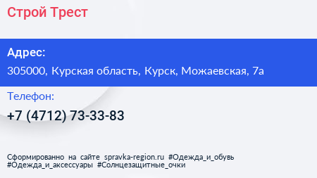 Строй Трест по адресу 305000, Курская область, Курск, Можаевская, 7а в дальнейшем Организация, размещена в следующих категориях: