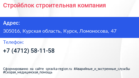 Стройблок, строительная компания по адресу 305016, Курская область, Курск, Ломоносова, 47 в дальнейшем Организация, размещена в следующих категориях: