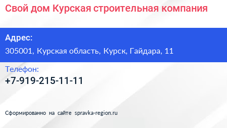 Свой дом, Курская строительная компания по адресу 305001, Курская область, Курск, Гайдара, 11 в дальнейшем Организация, размещена в следующих категориях: