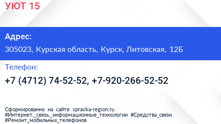 УЮТ 15+ по адресу 305023, Курская область, Курск, Литовская, 12Б в дальнейшем Организация, размещена в следующих категориях: