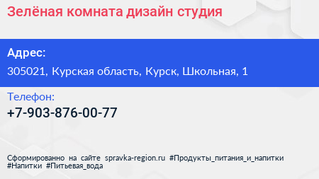 Зелёная комната, дизайн-студия по адресу 305021, Курская область, Курск, Школьная, 1 в дальнейшем Организация, размещена в следующих категориях: