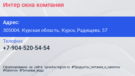 Интер окна, компания по адресу 305004, Курская область, Курск, Радищева, 57 в дальнейшем Организация, размещена в следующих категориях: