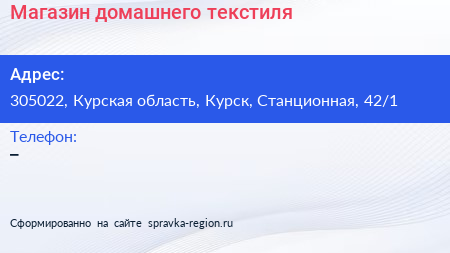 Магазин домашнего текстиля по адресу 305022, Курская область, Курск, Станционная, 42/1 в дальнейшем Организация, размещена в следующих категориях:
