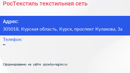 РосТекстиль, текстильная сеть по адресу 305018, Курская область, Курск, проспект Кулакова, 3а в дальнейшем Организация, размещена в следующих категориях: