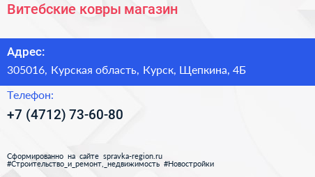 Витебские ковры, магазин по адресу 305016, Курская область, Курск, Щепкина, 4Б в дальнейшем Организация, размещена в следующих категориях: