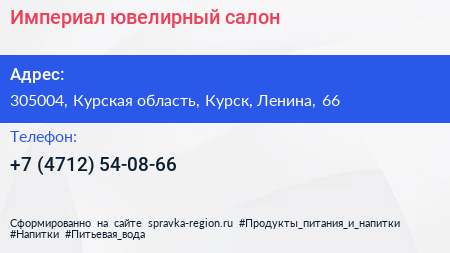 Империал, ювелирный салон по адресу 305004, Курская область, Курск, Ленина, 66 в дальнейшем Организация, размещена в следующих категориях:
