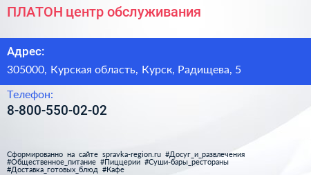 ПЛАТОН, центр обслуживания по адресу 305000, Курская область, Курск, Радищева, 5 в дальнейшем Организация, размещена в следующих категориях: