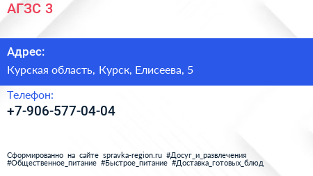 АГЗС №3 по адресу Курская область, Курск, Елисеева, 5 в дальнейшем Организация, размещена в следующих категориях: