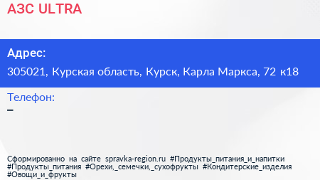 АЗС ULTRA по адресу 305021, Курская область, Курск, Карла Маркса, 72 к18 в дальнейшем Организация, размещена в следующих категориях: