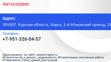 Автосервис по адресу 305007, Курская область, Курск, 1-й Моковский проезд, 11 в дальнейшем Организация, размещена в следующих категориях: