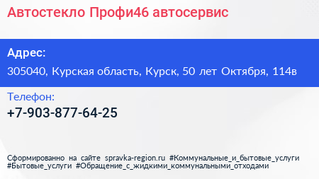 Автостекло Профи46, автосервис по адресу 305040, Курская область, Курск, 50 лет Октября, 114в в дальнейшем Организация, размещена в следующих категориях: